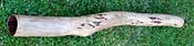 I don't know if it was an intentional part of the design or not, being my didj was of the finished timber variety and not being painted, but there's a cool little mark/design that uses the natural features of the wood and it appears to make out the two front flippers, the head and shell of what appears to be a sea turtle, looking at it from the top down. The carrying case is nice to look at too with it's Aboriginal style artwork, the many dots that make up a picture. It's almost like you're carrying your baby when you have it slinged on your back, a very good feeling.
